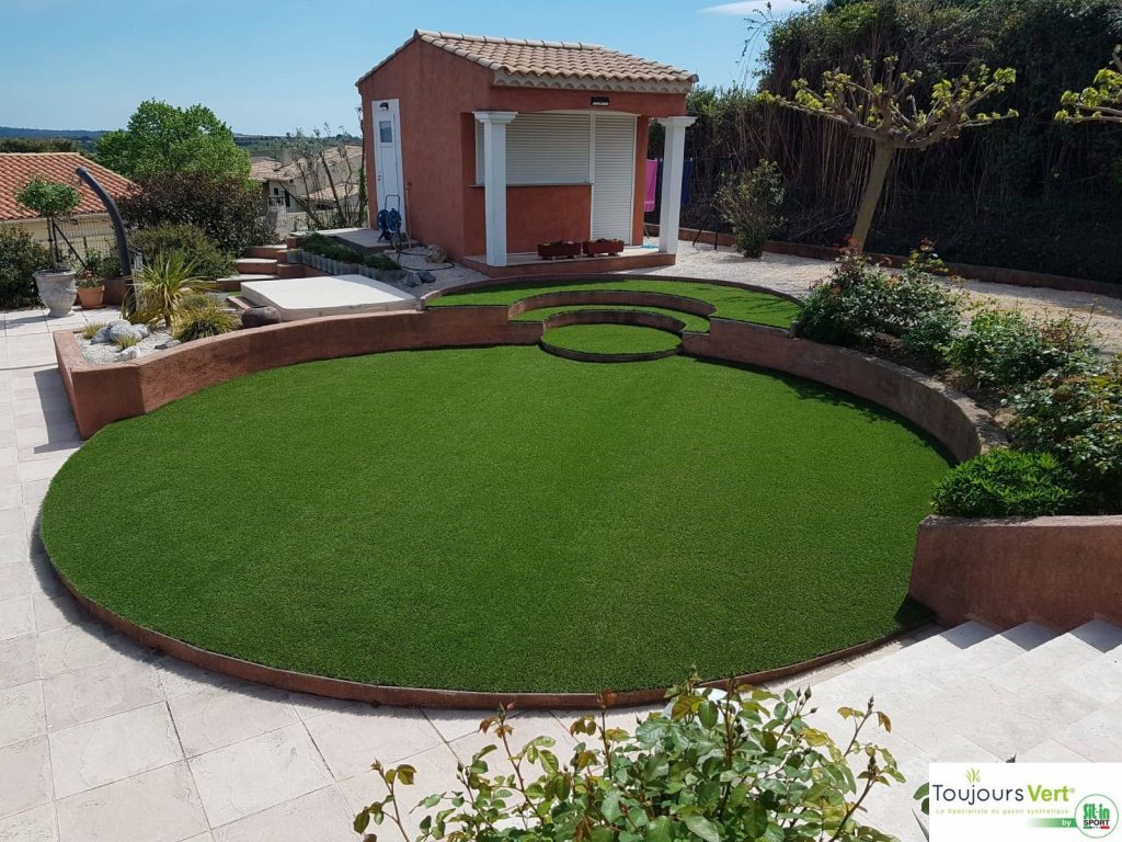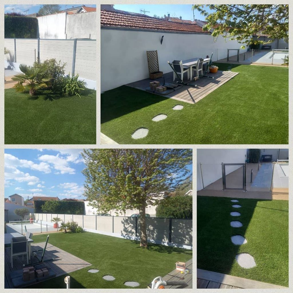 Pose gazon synthétique par professionnels Hérault Ce client nous a fait confiance et il ne le regrette pas... Nos poseurs qui sont à nos côtés depuis 15 ans savent parfaitement s'ada...