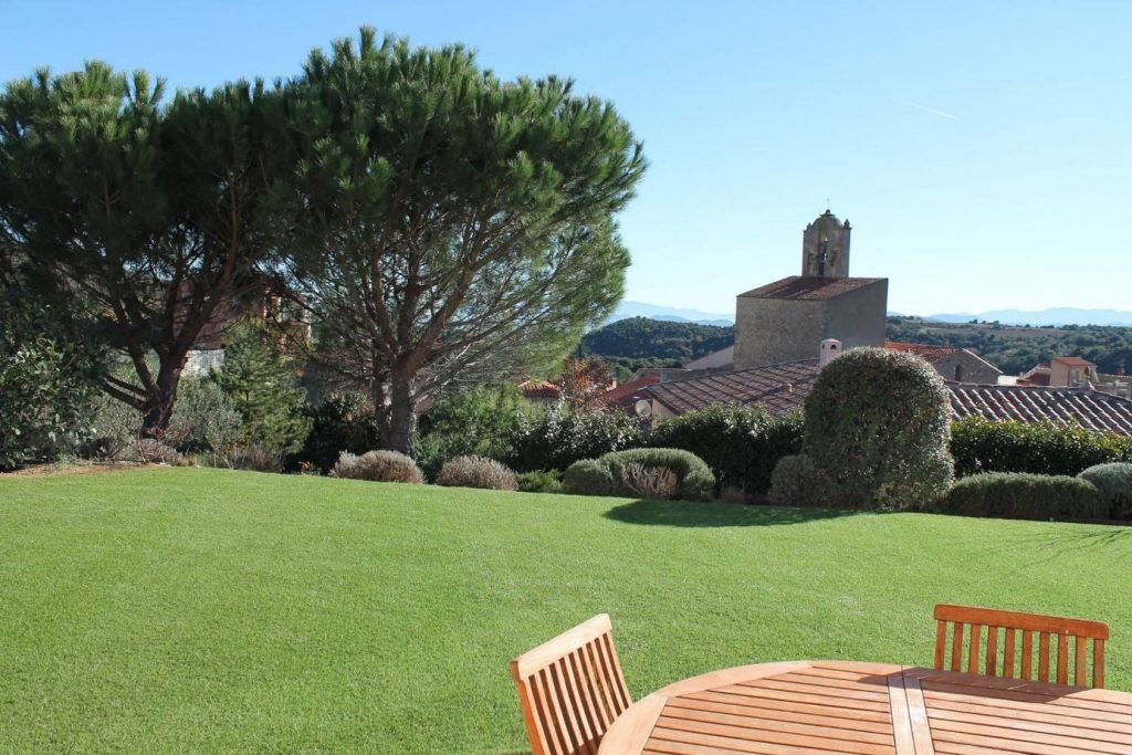 Réalisation d’un jardin avec notre gazon synthétique « plus vrai que nature » aux CLUSES (66) 333 m² de gazon synthétique Toujours Vert REALITY posé aux CLUSES dans les Pyrénées Orientales à 3 km de la frontière espagno...