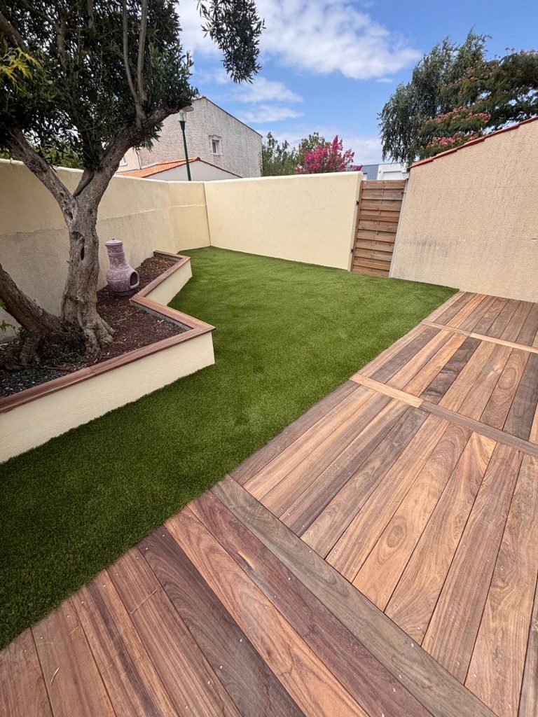 Chantier de 300 m² : transformation complète d’un extérieur grâce au gazon synthétique