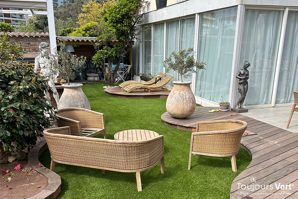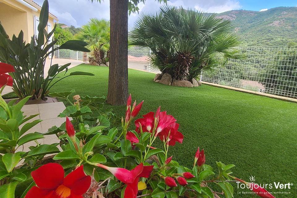 Située à Ajaccio, l’agence Toujours Vert Corse accompagne les particuliers, professionnels et collectivités dans tous leurs projets de gazon synthétique premium. Implantée au cœur de l’île, l’équipe intervient sur l’ensemble de la Corse-du-Sud et de la Haute-Corse pour concevoir, fournir et installer des pelouses haut de gamme adaptées au climat insulaire : résistance au soleil, drainage optimisé, fibres dernière génération et finitions ultra-réalistes. Que ce soit pour un jardin, une terrasse, un hôtel, une aire de jeux ou un espace sportif, Toujours Vert Corse garantit un résultat durable, esthétique et parfaitement intégré au paysage corse.